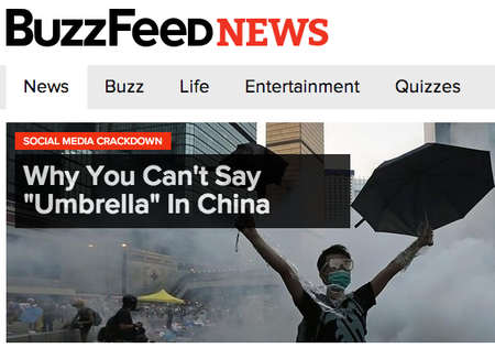 Buzzfeed • 30th September 2014 You can’t say “Hong Kong police” or “Umbrella” in China today Well, not on social media, anyway. The Hong Kong Occupy Central protest has triggered mainland China’s biggest ever crackdown on Weibo.