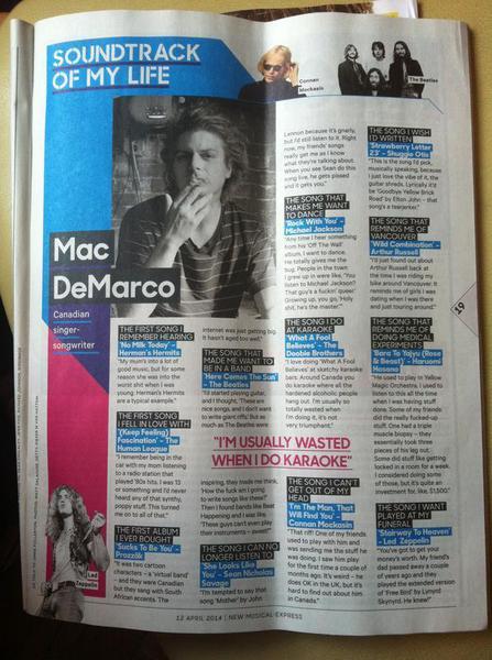 Nme • 12th April 2014 The soundtrack of Mac DeMarco's life I quizzed Mac about his influences when he visited Shanghai.