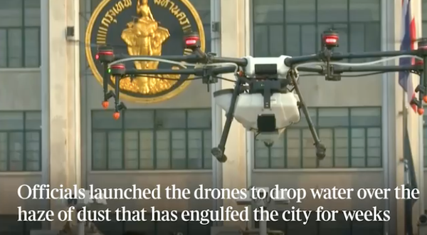 The Times • 1st February 2019 Bangkok sends drones to clean out the smog About 50 water-spraying drones were flown over Bangkok yesterday morning as part of frantic efforts to tackle surging air pollution levels.