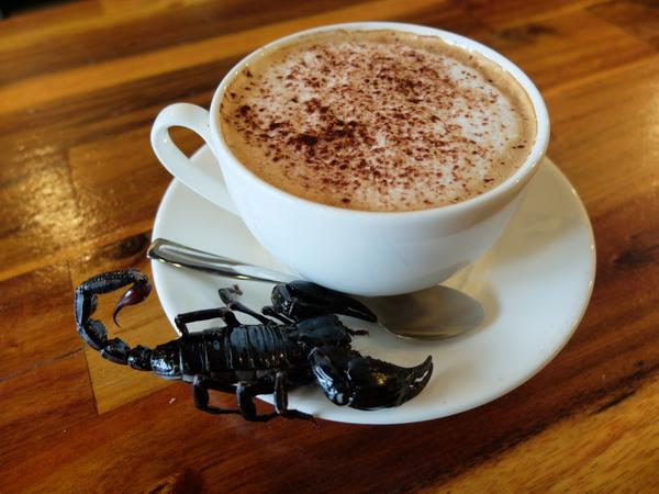 MUNCHIES • 6th August 2018 Scorpions and tarantulas crawl over your coffee at this Cambodian cafe Welcome to Phnom Penh's Reptile Cafe, which as well as lizards has a large array of arachnids.